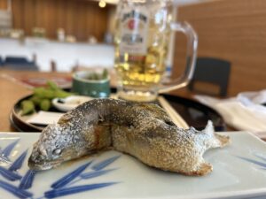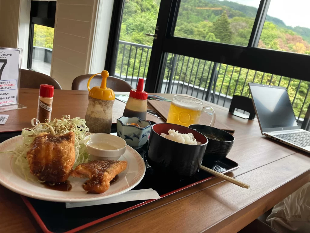 締めのサーモンフライ定食を頂いてから